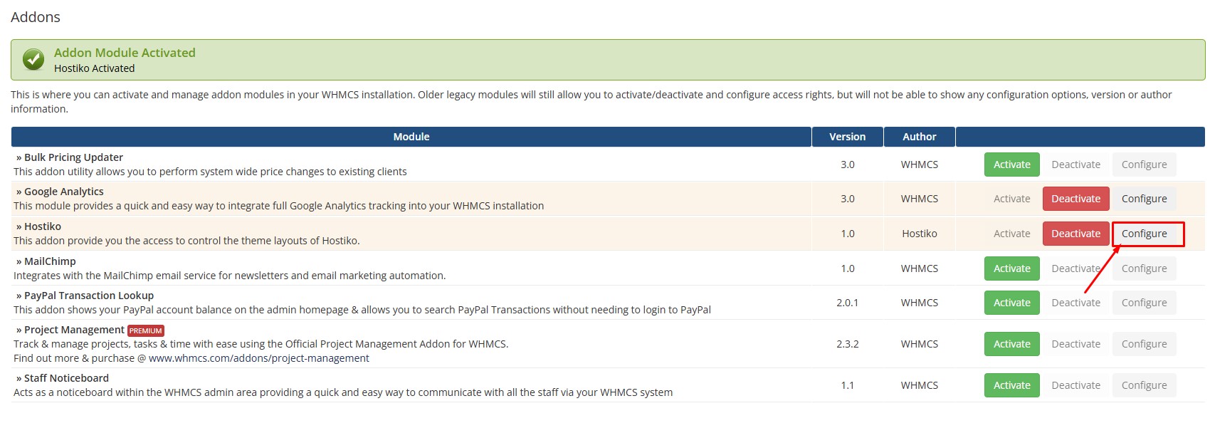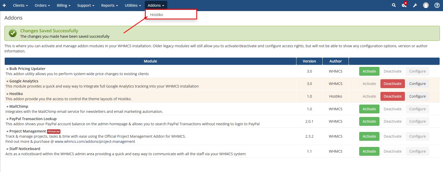 Hover over “Addons” and Open “Hostiko”.