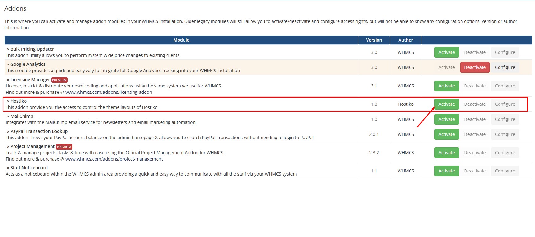 Look for “Hostiko” and activate it.